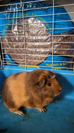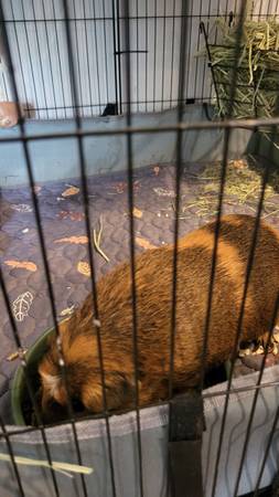 I am selling a large Guinea pig cage (2 x 5), a smaller cage, 3 hideouts, blankets, 2 beds, 2 water bottles, treats, hay, toys, play yard, hay holder - all for $80.