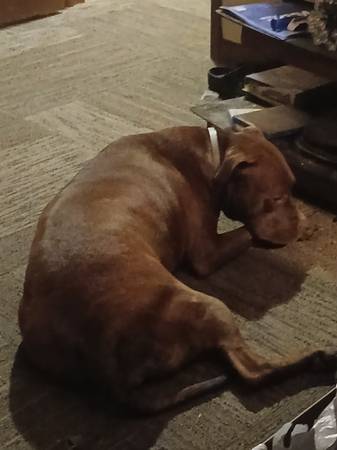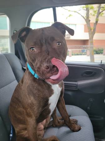 She is about a year and a half brindle. Lots of energy. Knows all her commands listens very well can be outside with no lease. Gets along with other animals. And kids and has no problem with all people. But come when it comes to play she plays kind of roughly you got to watch her. She pretty much spent her life at the ARL growing up so she was really never taught how to play with humans like that or is my guess. She suffers from really bad dry skin we just use coconut oil on her. She does not bark unless if she is playing so if somebody knocks at your door whatever she's not going to bark and she don't bark at people walking by or all that other nonsense. She's a really good dog I just can't physically with my help take care of with this much energy. She does attach more to males than anything. She was left to my care. Asking $150
