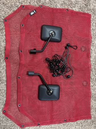 Great Wrangler MT tires & wheels, doors off mirrors, soft top with frame and hardware good condition and clear view windows & overhead mesh sun screen. $1195.00 takes it all.
