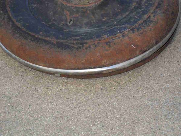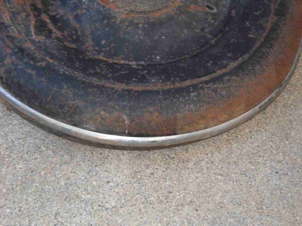 I have for sale a 1930s spare tire cover that would have been mounted on the rear of the vehicle. I got it with a 1936 Buick, but I don't know for sure if that was it's original application. It needs straightening (primarily the band), but I don't think it has any thin spots. It is roughly 30" in diameter and about 5 1/2" wide.