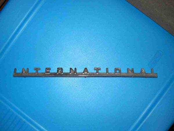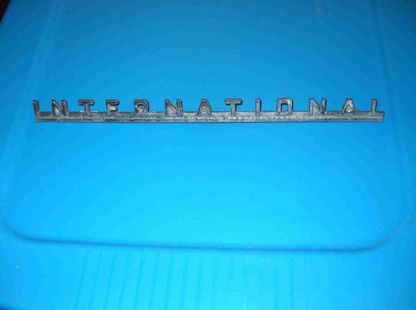 I have for sale a vintage "International" truck emblem. I believe these were used in the '40s and '50s. I have seen the interchange listed as 1941 thru 1956. However, I have not been able to verify that. This particular emblem was removed from a 1956 International S120 truck. As you can see, it does have bumps on it and a couple of the mounting pins are corroded. However, I don't think any of this would prevent it from being used on a "driver" condition truck.