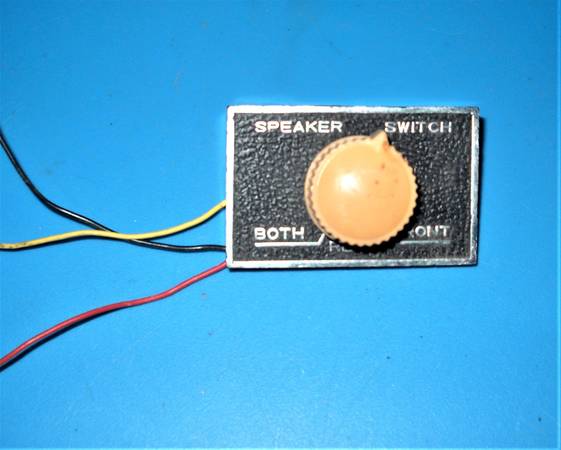 I have for sale a vintage front/rear speaker control switch. I believe this is from the late 1960s or early 1970s. Mounting plate and knob are in good condition. Switch itself does not currently turn.