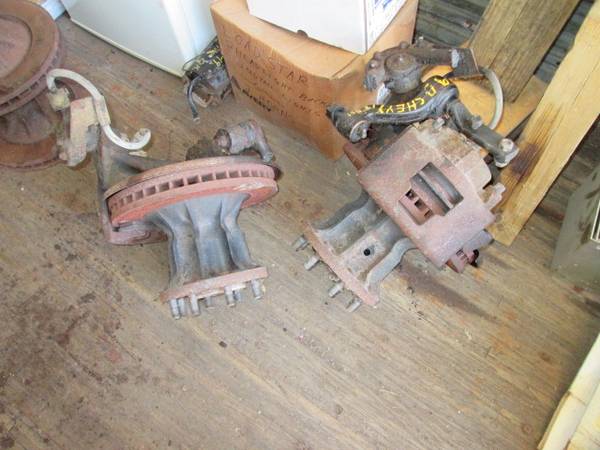 For sale; Front end parts for 1990 Chevy C-3500 dual wheeled cab@chassis 2WD. 2 front spindles, hub/rotors, @ calipers. $150.00 each or $250.00 for the pair. 6 hub/rotor assemblies with bearings $60.00 each. Idler arm $25.00. Hydra-booster SOLD. Steering gear with pitman arm $150.00. All parts worked when removed and stored inside. Also have 3 set of spindles, hub/rotor, caliper assemblies for 3/4 ton and single wheeled 1 ton Chevys 78. 79 @ 1980. $75.00 each. CALLS ONLY. five1five 5sevenzero 5one8four.