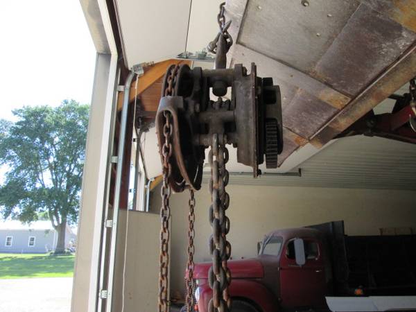 For sale; 2 USA made heavy duty chain hoists. #one is a 1.5 ton unit in good working condition $200.00. The 2nd is a very heavy duty 2 ton unit with spur gears, brand name is Yale $500.00. CALLS...