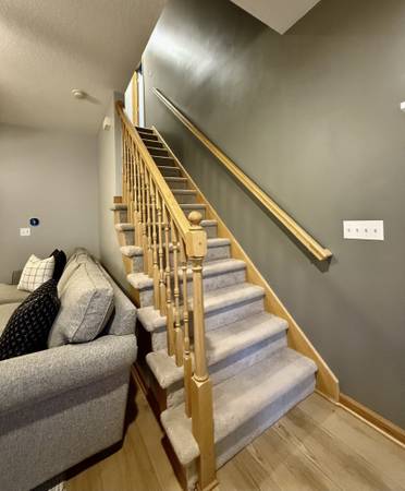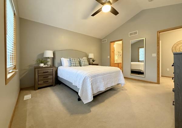 This beautifully updated townhouse is truly move-in ready! The main floor features brand-new LVP flooring, a spacious living room with a cozy corner stone gas fireplace, a large dining area, and a modern kitchen with new appliances. A convenient half bath is located just off the garage entry. Upstairs, you’ll find two generously sized bedrooms, each with its own full bath and large closet. The 2nd-floor laundry room makes for easy access and convenience. The home also includes an extra-long attached single-car garage. Enjoy walking to schools, Prairie Ridge Sports Complex, and the city pool, with quick access to State Street for an easy commute.