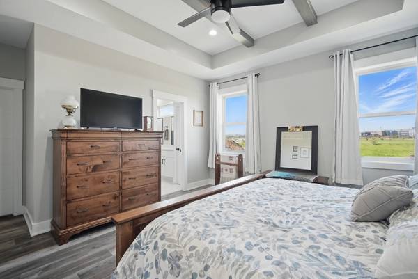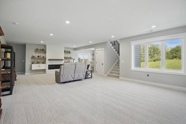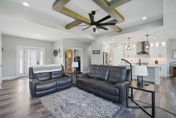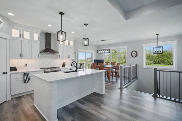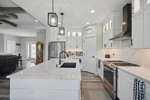 Experience nearly 3,700 sq ft of beautifully finished living space just steps from Triumph Park, top-rated schools, and scenic trails. This spacious 6-bedroom, 4-bathroom, walkout ranch offers high-end finishes and a functional layout, featuring an open-concept kitchen with a large island, ample pantry, LVP flooring, and modern lighting. Enjoy seamless indoor-outdoor living with a dining area that opens to a covered deck and private backyard. The bright living room includes a cozy electric fireplace, while the main-floor primary suite features a walk-in closet and stunning tiled shower. Two additional bedrooms, a full bath, a mudroom, and laundry complete the main level. The finished walkout basement includes a second fireplace, wet bar, built-ins, three more bedrooms (one with walk-in closet), and a full bath - perfect for guests or entertaining. Don't miss this beautifully designed home in an unbeatable location!