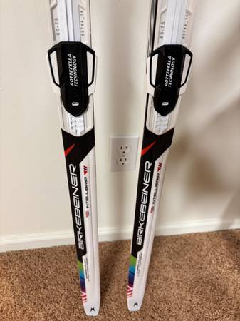 Madshus Birkebeiner Classic Cross Country Skin Skis, 195cm Never used, glide areas waxed once. These skis feature integrated mohair/nylon skins in the kick area for the perfect blend of kick and glide. The binding move plates make it easy to adjust the position of the binding to fine tune the degree of kick/glide. These are best suited for a skier weighing 132-165 lbs. GREAT SKIS!