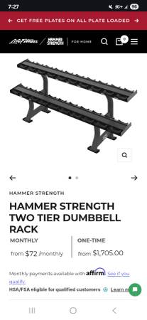 Hammer Strength 10 pair dumbbell racks ($700 per rack or $1000 for both) Same racks selling for over $1500 per rack online currently.