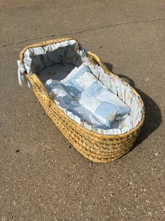 Cute wicker baby bed or doll bed or cat bed!!! $30 cash only