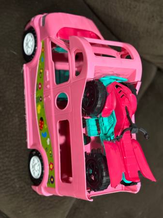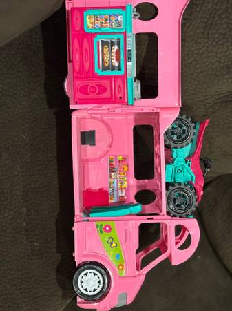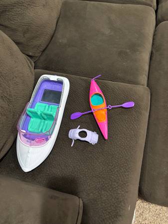 Barbie brand boat, sled and kayak ATV and Motorhome not Barbie brand but fit Barbie dolls Side of Motorhome opens up Comes with life jacket Everything is in working condition (not broken) $35.00...