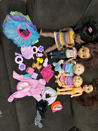 5 dolls A lot of accessories and clothes $20.00 cash only Prefer texts