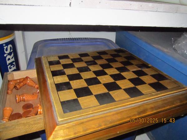 Cranium, unopened Apples to Apples, Scattergories, You Want to be a Millionaire, Twister(old, maybe original), Clue, Battleship, Wood checker/chess board with 2 storage drawers. All games guaranteed to be complete. And a cribbage board made from a tree branch, no pegs.