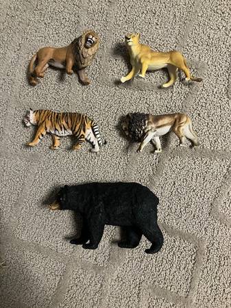 Various toys all made by the Schleich toy brand and some others.