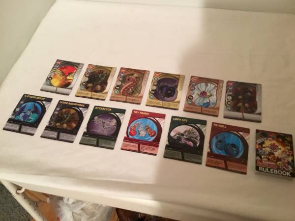 12 Bakugan Battle Brawlers cards and rules book. 6 magnetic cards and 6 non-magnetic. In very good conditions, some with bent corners. From smoke, pet and bedbug free home.