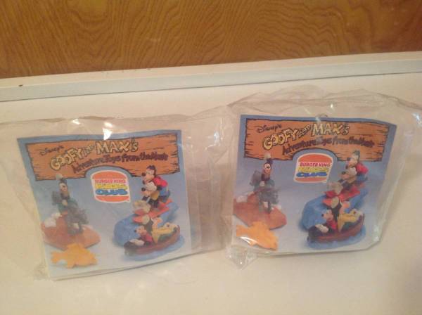We have 2 Goofy and Max's Adventure toys from Burger King, 1994. Both in original sealed packages. $1 for all