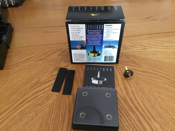 Levitron antigravity top, copyright 1995. By using magnets, levitate the spinning top. Named Best New Science Toy by the American Assoc, of Physics Teachers. Ages 8 & up. In original box with manual. Very good condition. $3
