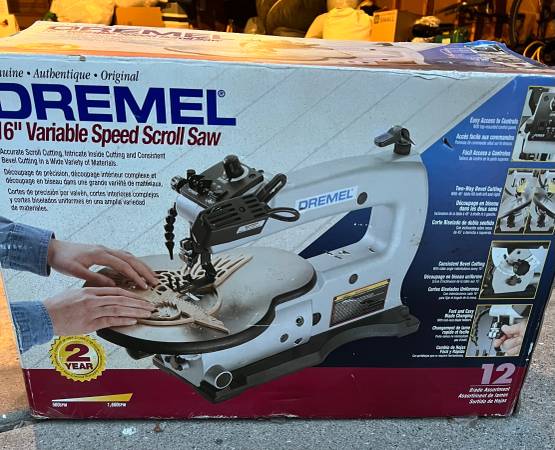 Used a little in great and like new working condition. Dremel 16” Variable Speed Scroll Saw. With manuals and blades. Still in original box. show contact info