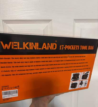 Welikinland 17-pockets tool bag is heavy duty tool bag for electricians, mechanics etc. It is brand new $25