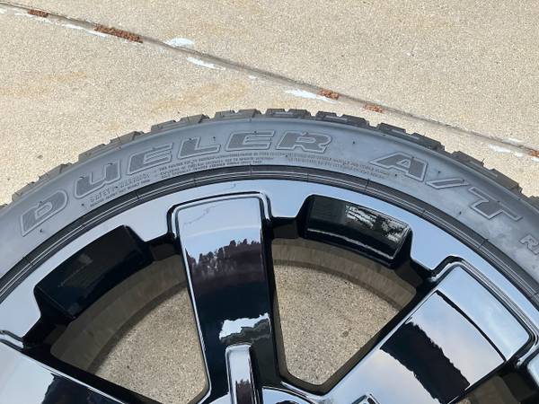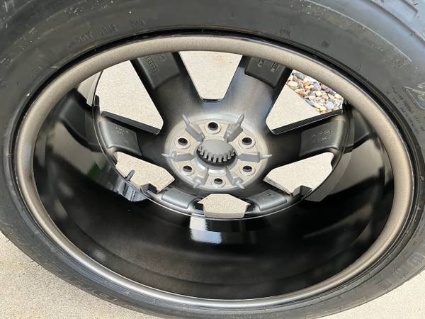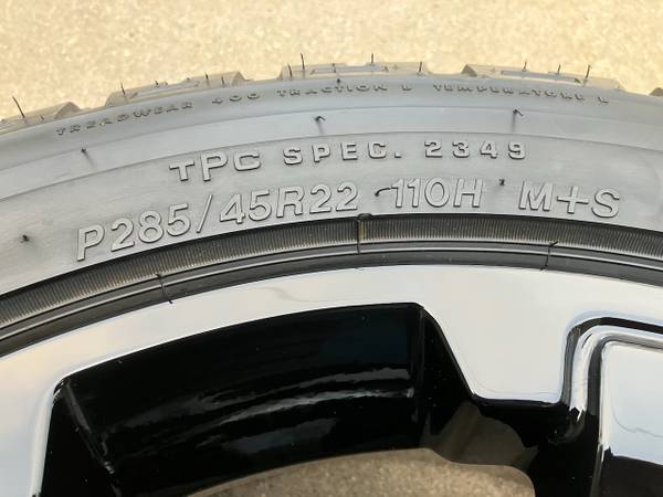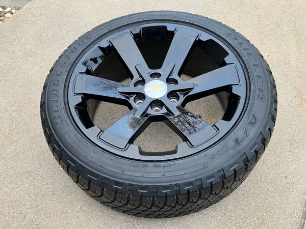 New GM Accessory 22 x 9" wheel with new Bridgestone Dueler P285/45R22 tire. This was a display piece that was never bolted to a vehicle and has never seen the road. Overall, it's a very nice wheel and tire if you need one. Chevy center cap is included. Tire is not balanced and I assume there is no TPMS.