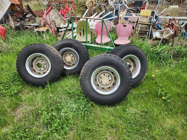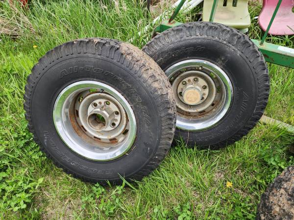 1 FULL SET OF GM 4X4 RALLY WHEELS 6 BOLT, ALL HAVE CAPS AND RINGS THEY ARE IN DECENT SHAPE TIRES ARE OLD AND CRACKED BUT HOLD AIR. $300.00 CASH ONLY.. PLEASE CALL show contact info