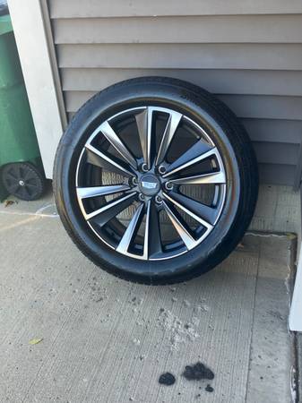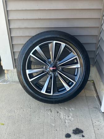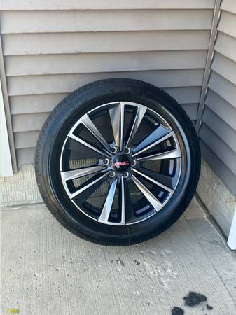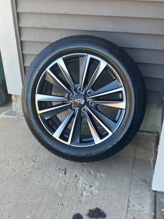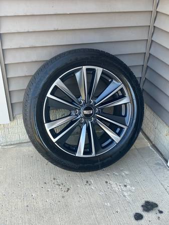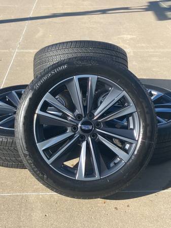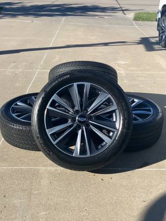 For Sale: Take off 22" wheels and tires from a new Cadillac Escalade. The set was removed at the dealership for a more aggressive set, before it left the lot. These are the matte grey/machined factory wheels with OEM Bridgestone Alenza A/S 275 50 22 tires. Tire tread at new specs as mould marks are still present on all tires, as seen in the pictures. This would be a perfect upgrade over the regular plain 18" or 20" alloys. Included are center caps and tire pressure sensors. As Chevy and GMC caps on hand I will swap out based on your truck, see pictures. These will look great on any Silverado /Sierra/Tahoe or Yukon 1500. Fits full size 1/2 tons from 1988-2025 with a 6 bolt pattern. Asking $2200 or best offer, call or text at Jeremy (515) 5 1 4 - 4 7 9 1.