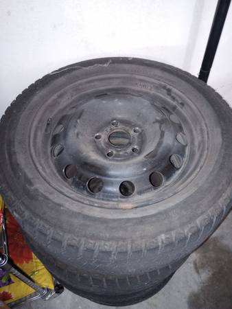Blizzak snow tires no patches or plugs mounted and balanced on steel wheels 50 percent tread with hub caps and vw center caps 5x112 pattern fits German and some Japanese makes.100 cash$